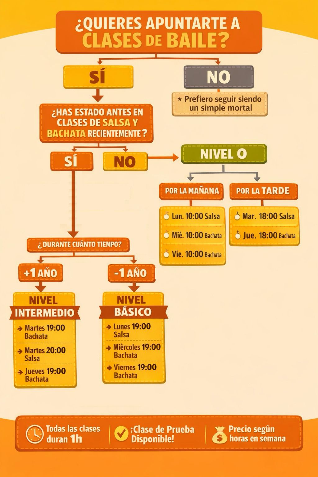 Aprende a bailar Salsa y Bachata de la manera más dinámica, divertida y sin necesidad de experiencia previa. ¡No hace falta venir en pareja!
